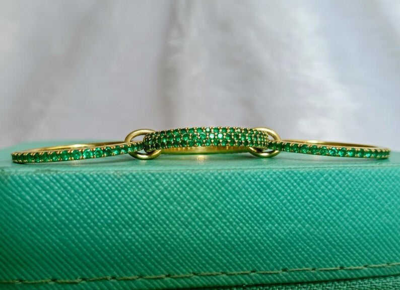 925 Sterling Silver Emerald Three Interlocking Spinner Ring – Handmade Linked Design