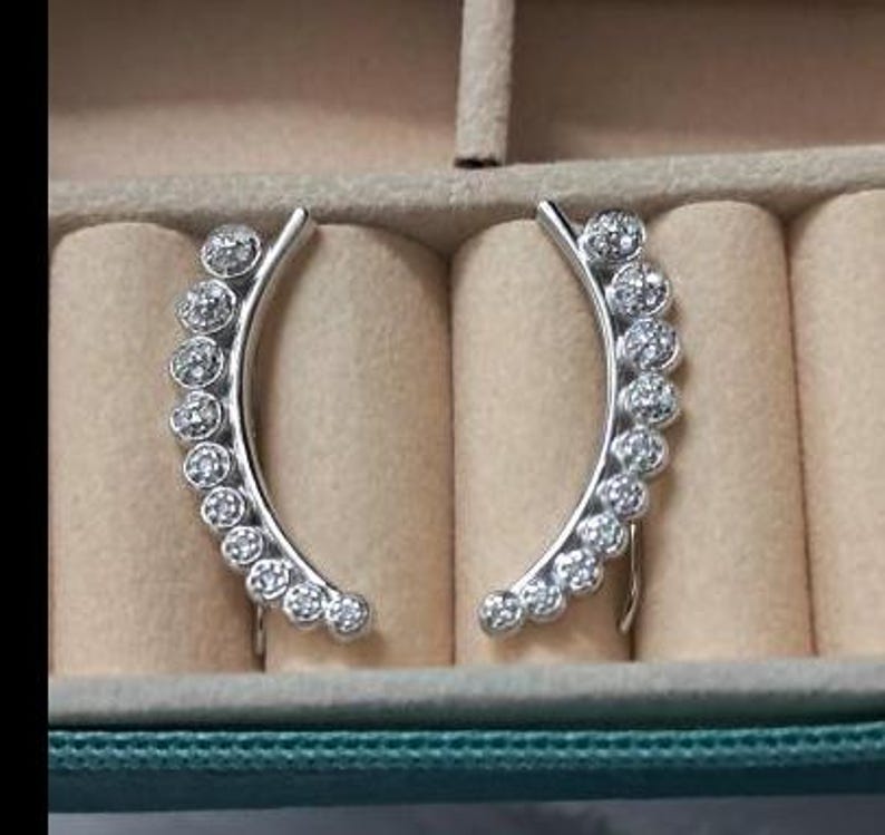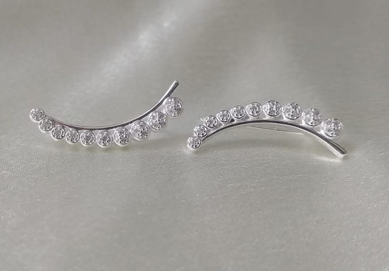 Handmade Diamond Graduation Ear Climber in 925 Sterling Silver – Fine Piercing Jewelry
