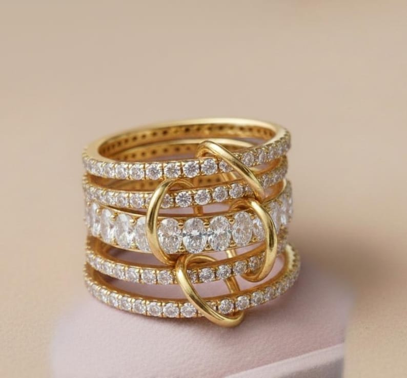 Explore our premium collection of Oval and Round Diamond Rings, designed for those who appreciate bold craftsmanship and timeless beauty. This collection features Diamond White Stone Interlocking Chunky Handmade Rings that combine elegance with a strong, modern look. Each Diamond Ring is thoughtfully crafted as a Diamond Interlocking Ring, showcasing the beauty of Five Band Rings and intricate multi-linked designs.